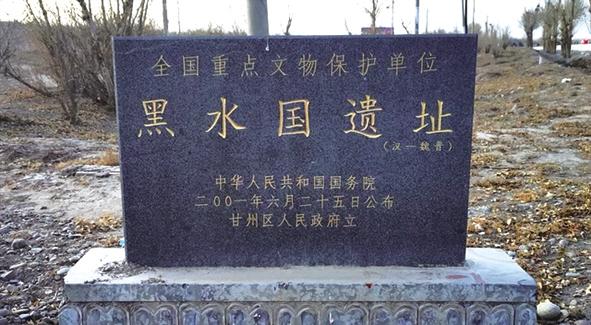 在于右任老先生寫詩后的自注,“甘州西黑水河岸古墳占地十余里,土人稱為‘黑水國’,掘者發(fā)現(xiàn)中原灶具甚多,遺骸脛骨皆長……”古黑水國遺址坐落在甘肅省張掖市甘州區(qū)西北17公里處,該遺址又稱黑水國城堡,俗稱黑水國,民間亦稱甘州老城,是“絲綢之路”上的著名驛站,距今有4000多年的歷史,是集漢唐古城、史前遺址、古寺院遺址、古屯莊、古墓葬為一體的龐大的甘州“歷史古籍”,也是集古代人文風(fēng)光、沙丘、湖泊、蘆蕩、濕地為一體的河西“特色畫冊(cè)”,在考古界有“河西走廊文物寶地”之稱,1908年由俄羅斯考古學(xué)家和探險(xiǎn)家彼得·科茲洛夫發(fā)現(xiàn)并發(fā)掘,它的發(fā)現(xiàn)是當(dāng)時(shí)震驚中外的考古學(xué)大事件,2001年,古黑水國遺址被國務(wù)院公布為全國重點(diǎn)文物保護(hù)單位。