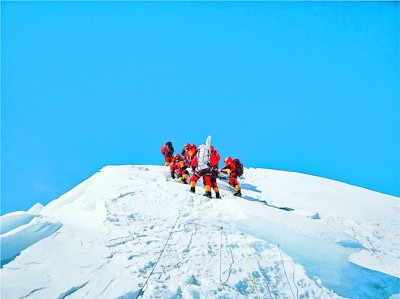 珠峰是地球的驕傲,人類探險(xiǎn)精神和探索精神的制高點(diǎn)與交匯處。登頂珠峰,是人體內(nèi)冒險(xiǎn)因子的永恒主題,是人類挑戰(zhàn)自身、挑戰(zhàn)極限、創(chuàng)新紀(jì)錄的不朽篇章。一次又一次登頂珠峰的背后,顯示人性中更多的征服欲和榮譽(yù)感,凸現(xiàn)難以用言語(yǔ)表達(dá)的從肉體到思想,甚至到生命的付出。