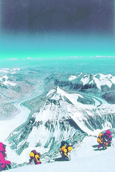 自1953年以來(lái),人類以無(wú)與倫比的勇氣和日臻成熟的登山技巧,不斷地向珠穆朗瑪峰進(jìn)發(fā)。年復(fù)一年的登頂,在喜馬拉雅山脈蒼茫的峰嶺,寫下厚重的英雄史詩(shī)。1953年5月29日,新西蘭人埃德蒙·希拉里和向?qū)Уぴ?middot;諾爾蓋,從珠穆朗瑪峰南坡登頂,戴上人類歷史上第一次登頂珠峰的桂冠。1960年5月25日4點(diǎn)20分,中國(guó)登山隊(duì)隊(duì)員王富洲、屈銀華、貢布(藏族)經(jīng)過艱苦卓絕的攀登,終于首次從北坡登上地球最高的山峰珠穆朗瑪峰頂峰。中國(guó)人創(chuàng)造了世界登山史的新紀(jì)錄。經(jīng)過多年堅(jiān)忍不拔的努力,登頂珠穆朗瑪峰從夢(mèng)想變成現(xiàn)實(shí)。從1953年至1999年,1169人次登頂珠峰。從2000年到2015年,5832人次登頂珠峰。到2015年,世界上已有7001人次登頂珠峰。