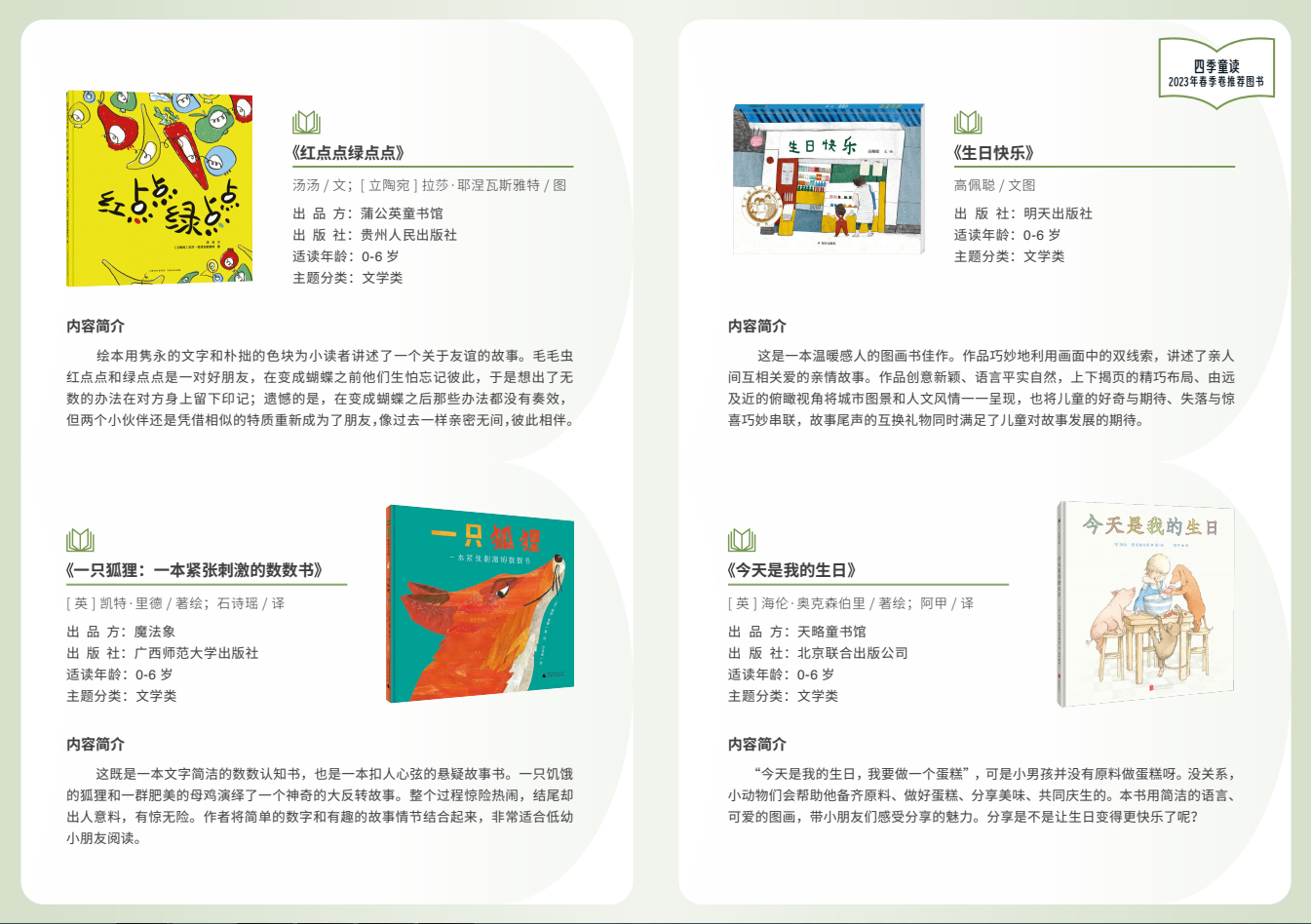 附:“四季童讀”春季卷推薦書單(圖片由國(guó)家圖書館提供)