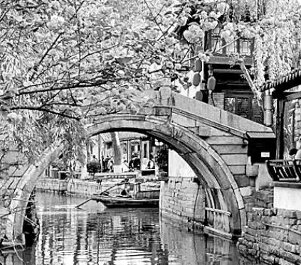 如他在“寺殿篇”之《紹興大禹陵及蘭亭》一文中,將禹陵與自然環(huán)境的因應(yīng)關(guān)系交代得極盡輕靈簡約,余韻不盡:“大禹陵西向,面臨禹池,正對亭山,禹池外二小山分列左右,而會稽山環(huán)抱其后。”同篇之《江西貴溪的道教建筑》一文中的天師府則“位于鎮(zhèn)西端,門臨上清宮前街,面沂溪(又名上清溪),對琴瑟嶺,北倚西花山,豫樟成林,陰翳蔽日”。而《揚州伊斯蘭教建筑》中的普哈丁墓園“位于江蘇揚州東關(guān)城外運河?xùn)|岸的土崗上。崗上蔥郁的古木與參差的亭閣相掩映,望之蔚然如畫。它點綴在運河的沿岸,舟行其下,十分令人注目”。