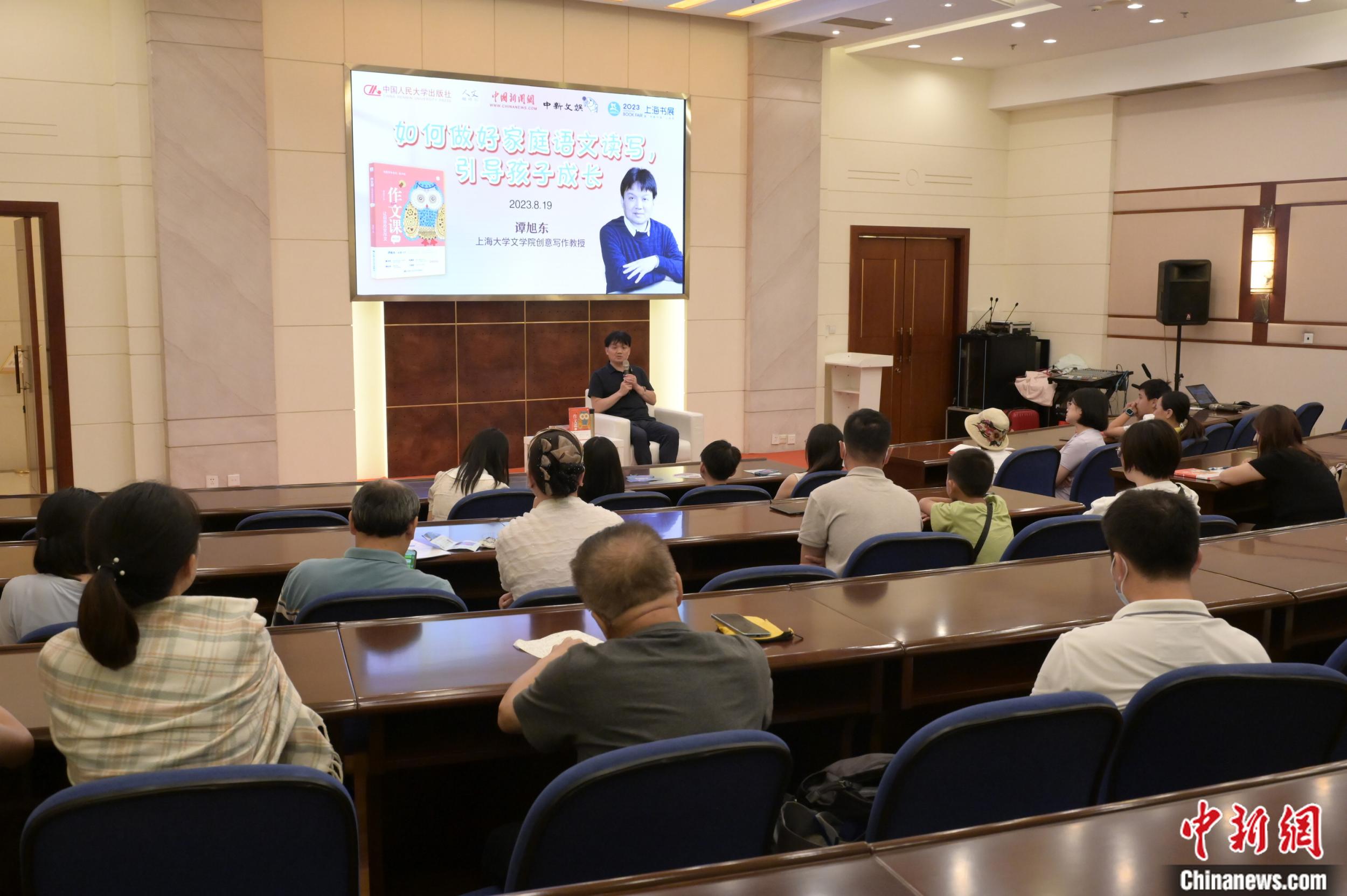 中新網(wǎng)8月22日電 8月19日晚,魯迅文學(xué)獎得主、上海大學(xué)文學(xué)院教授、博士生導(dǎo)師譚旭東攜新作《作文課:讓創(chuàng)意改變作文》,走進(jìn)上海書展,暢談家庭語文教育。譚旭東以自己多年指導(dǎo)中小學(xué)語文教育的經(jīng)歷與大家分享:家庭語文讀寫的培養(yǎng),對孩子的成長和語文的進(jìn)步,都非常關(guān)鍵。
