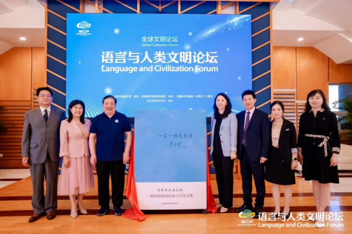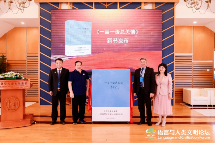 9月16日,由北京外國(guó)語(yǔ)大學(xué)主辦、外語(yǔ)教學(xué)與研究出版社承辦的“語(yǔ)言與人類文明”論壇在北京舉辦?;顒?dòng)上舉行了由中國(guó)辭書學(xué)會(huì)會(huì)長(zhǎng)、北京語(yǔ)言大學(xué)教授李宇明撰著,外語(yǔ)教學(xué)與研究出版社出版的《一言一語(yǔ)總關(guān)情》新書發(fā)布儀式。北京外國(guó)語(yǔ)大學(xué)黨委副書記胡志鋼,外研集團(tuán)黨委書記、董事長(zhǎng)、外研社社長(zhǎng)王芳,李宇明教授,烏茲別克斯坦國(guó)立世界語(yǔ)言大學(xué)副校長(zhǎng)阿利舍爾·阿比讓諾夫(AlisherAbidjanov)共同為新書揭幕。