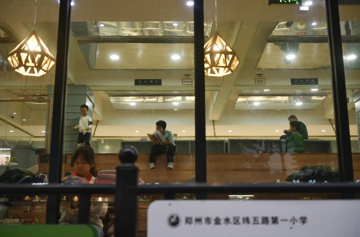 10月18日,小學生在鄭州市緯五路第一小學校園閱讀中心內閱讀。