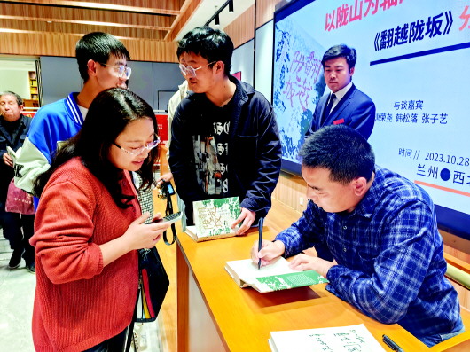作為閻海軍多年的朋友和如今的同事,媒體人、作家胡曉宜認(rèn)為,從初期寫作《崖邊報(bào)告》《官墻里》《隴中手藝》,再到現(xiàn)在的《翻越隴坂》,她清晰地感受到閻海軍的寫作視野越來(lái)越廣闊,他身上也愈發(fā)體現(xiàn)出一位作家該有的家國(guó)情懷。“另外,經(jīng)過(guò)多年的堅(jiān)持和打磨,海軍對(duì)語(yǔ)言的把控也在不斷精進(jìn)?!斗诫]坂》中,他利用精到的對(duì)語(yǔ)言的把握,塑造了12位栩栩如生的鮮活人物,特別是作品多角度的敘事方式,很有鏡頭感。”談及《翻越隴坂》,胡曉宜說(shuō):“這是一部有擔(dān)當(dāng)?shù)淖髌?,它很好地做到了歷史和人文地理的結(jié)合,讓讀者通過(guò)他的書寫,看到了隴山東西這一方天地里歷史演替的厚重和地理環(huán)境的持久,以及生命故事的鮮活。”
