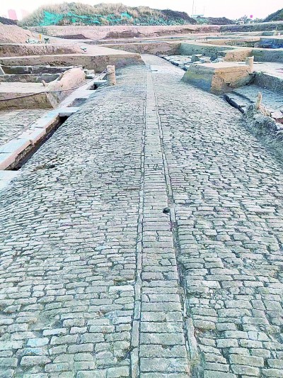 淮安新路遺址發(fā)現(xiàn)的一條寬約4米的道路 資料圖片