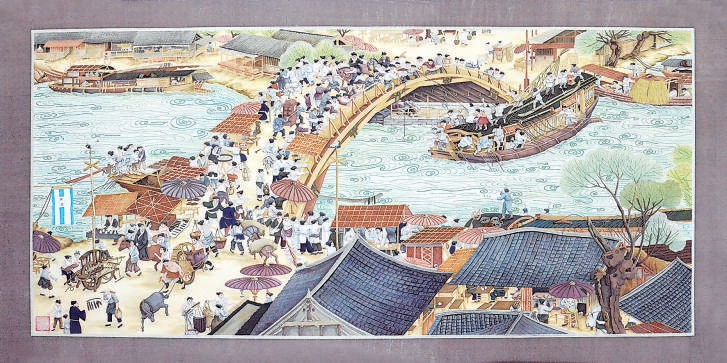《清明上河圖》大量采用硬撥、浮 雕 撥、剪貼、柳繡、抽絲、繪畫、打籽繡、編織等工藝。