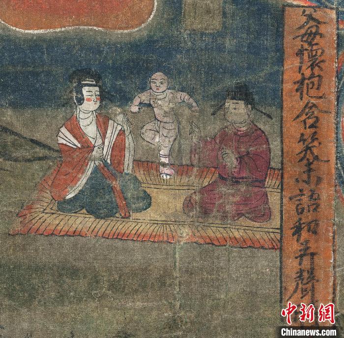 中新網(wǎng)蘭州6月1日電 (記者 馮志軍 李亞龍 高瑩)懷胎、哺育、搖籃、嬉戲、教育……甘肅省博物館所藏“報父母恩重經(jīng)變絹畫”,由十余幅圖像組成的連環(huán)畫敘述了“父母養(yǎng)育,含辛茹苦”“褒揚孝子,鞭撻嬌子不孝”等中國式孝道。其雖以宣揚佛教孝道思想為題材,卻是一部被杜撰千年的“偽經(jīng)”,意在將中國傳統(tǒng)孝親文化借“佛”之口弘揚。