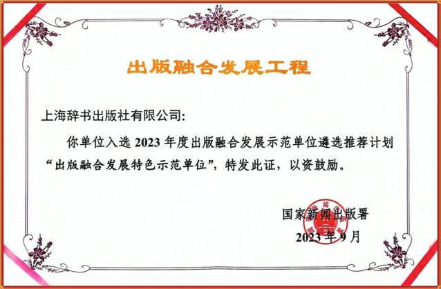 上海辭書出版社入選2023年度出版融合發(fā)展示范單位遴選推薦計(jì)劃“出版融合發(fā)展特色示范單位”