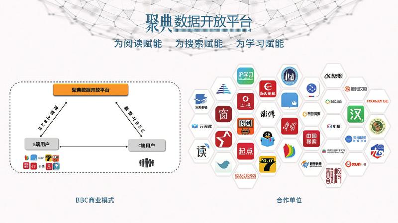 以我為主,推動產(chǎn)業(yè)鏈和生態(tài)圈的協(xié)同共進(jìn)。與以往數(shù)字出版平臺大都采用B2B、B2C等商業(yè)模式不同,聚典平臺采取的是BBC運(yùn)營模式,即在商務(wù)流上是B2B模式,而在數(shù)據(jù)流上是B2C模式。該模式很好地解決了用戶在數(shù)字閱讀過程中的痛點(diǎn),同時又很好地平衡了各方利益,C端用戶無需付費(fèi)便可享受聚典平臺的優(yōu)質(zhì)內(nèi)容資源服務(wù),B端客戶向平臺付費(fèi)以獲得增值服務(wù),在增加其產(chǎn)品用戶黏性的同時,也減輕了自身的數(shù)據(jù)加工和技術(shù)開發(fā)工作。聚典平臺不僅在總體上創(chuàng)造出增量價值,更通過制度的設(shè)計(jì)很好地平衡了增量價值的合理分配,讓各方都分享到其中的一部分,從而調(diào)動了各方的參與性和積極性。