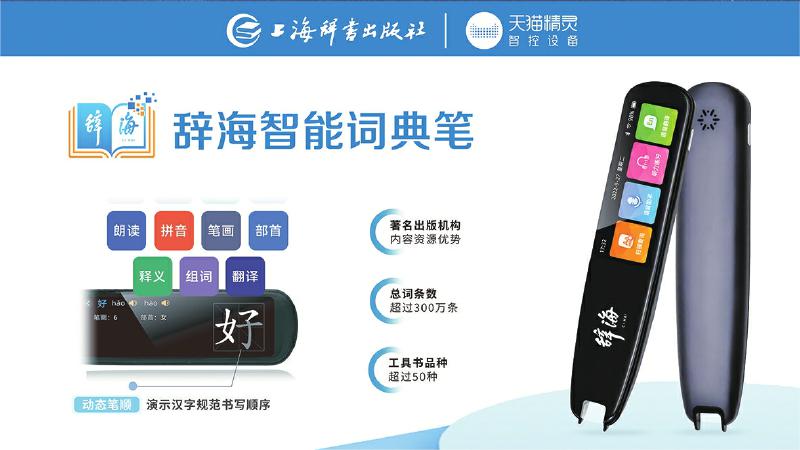 為了更好地適應(yīng)用戶在紙質(zhì)閱讀過程中的快速查檢需求,辭書社經(jīng)過數(shù)年設(shè)計(jì)研發(fā),于2022年9月推出辭海智能詞典筆。詞典筆充分依托聚典平臺積累的海量內(nèi)容資源,將1.6億字裝進(jìn)一支詞典筆,內(nèi)置詞條達(dá)到了300余萬條,收錄了《辭?!罚ǖ谄甙妫┖汀洞筠o?!贰稘h語大詞典》《英漢大詞典》《世紀(jì)漢英大詞典》等國家級標(biāo)志性工具書,整合《現(xiàn)代漢語大詞典》《現(xiàn)代漢語規(guī)范詞典》《中國成語大辭典》《同義詞、反義詞大詞典》等精品工具書,讓用戶每次都能夠查有所得。同時,詞典筆實(shí)現(xiàn)掃讀結(jié)果1秒呈現(xiàn),并融合數(shù)字智能技術(shù),集掃描查詢、語音助手、聽力練習(xí)、語音翻譯、口語測評、數(shù)碼錄音、生詞本、文本摘抄等八大功能于一體,實(shí)現(xiàn)一筆多用。