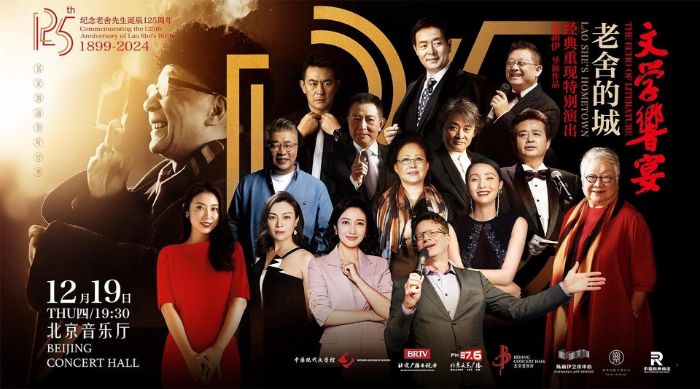 12月19日,一場獨特的文學“響”宴在北京音樂廳舉行。這是一期以老舍為文化主題的詩文雅集,一個關于歷史文化名城北京的年度盛典。在總導演陳薪伊的引領下,濮存昕、斯琴高娃、史可、陶虹、春妮、季冠霖、李立宏、任志宏、徐濤、大山、李洪濤、小柯、張樹榮等眾多著名藝術家,共同誦讀老舍先生的經(jīng)典名作,向這位偉大的人民藝術家致敬。