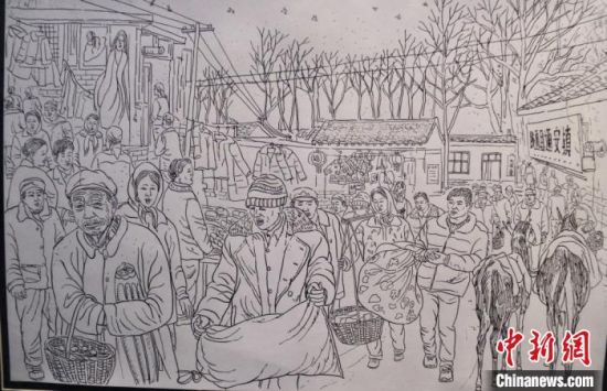 蘭州鋼筆畫愛好者手繪系列“臘月圖”,記錄“集市文化”,留住“年味”以感悟鄉(xiāng)愁?!¢Z姣 攝