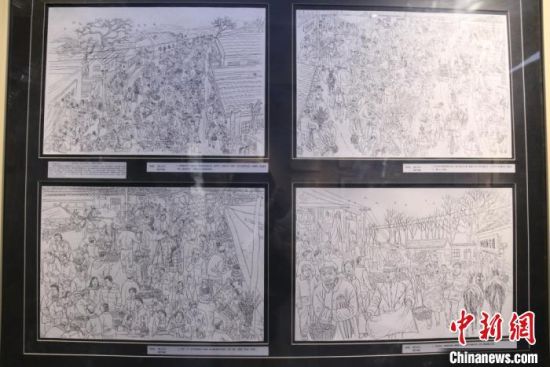 圖為蘭州鋼筆畫愛好者周新平手繪《隴西臘月圖》中人物。閆姣攝