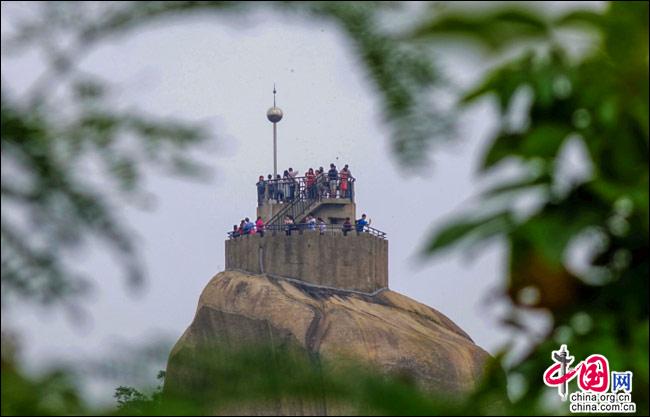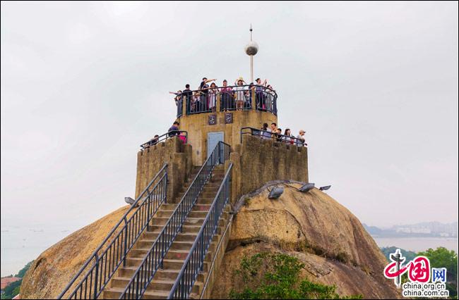說到自然風光,便不能不提日光巖——這島上的最高峰。日光巖別名“晃巖”,相傳1641年,鄭成功來到此地,見此地風景勝過吉林日光山,便把“晃”字拆開,稱之為“日光巖”。要登臨此巖,一窺日光,便要辛勞走一段山路。其間渾圓的巨石層出不窮,蒼郁的古樹隨處可見,更有閩南大厝、名人題字與這些自然風景相得益彰。于是游人往往在心曠神怡中,路過“九夏生寒”“鷺江龍窟”,經由“閩海雄風”“古避暑洞”,不知不覺間,來到巖頂的平臺。立定此處,憑欄遠望,只見輕靈的云天近在咫尺,島上的屋宇盡收眼簾——別提有多么愜意!難怪有詩人寫道:“一葉輕舟破霧霾,波濤滾滾此登臺。日光巖上憑欄望,隔岸清風過海來。”(陳仁德句)