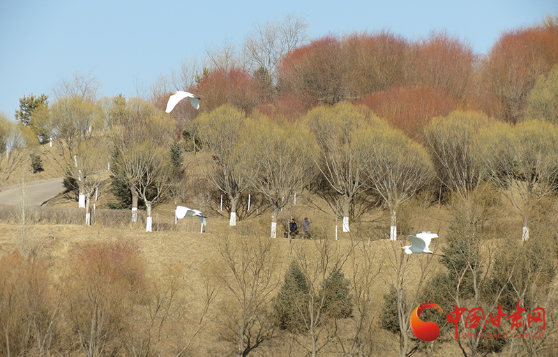 3月11日,大批北遷候鳥(niǎo)在臨澤流沙河4A級(jí)景區(qū)棲息覓食,時(shí)而引頸高歌、時(shí)而展翅高飛,呈現(xiàn)出一幅人與自然和諧相處的美麗畫(huà)卷。