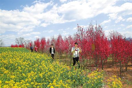 郭坪的麗桃花是以鄉(xiāng)村旅游的形式,引進(jìn)的外來(lái)花卉。其栽種面積有十二畝,其枝株高大,枝形直指蒼穹有一種向上的氣勢(shì)?;ǘ涠酁閺?fù)瓣,花色有紅有白有粉,讓人目不暇接。遠(yuǎn)遠(yuǎn)望去猶如升騰的朝霞,使人不覺(jué)就想起了詩(shī)經(jīng)里的名句“桃之夭夭,灼灼其華”。吟哦著古人的詩(shī)句走進(jìn)麗桃花的海洋中,心便猶如喝了桃花釀的酒,醉與不醉便是麗桃花說(shuō)了算,那就放開(kāi)腳步在花海里暢游吧。