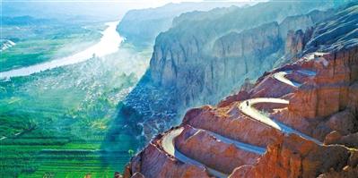 二十二道彎:落差206米的盤山路,近180度的彎道22個坡陡彎急,路旁巍峨石峰視線所及是黃河曲流、綠洲農(nóng)莊,俯瞰是最震撼動人的角度。
