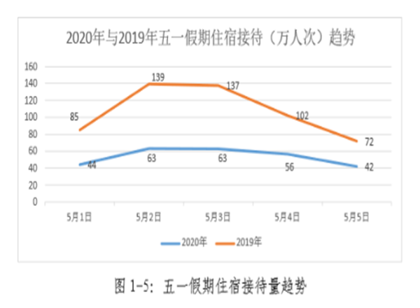 “五一”假期期間全省住宿共接待268.7萬人次,較去年同期535.7萬人次下降49.8%。