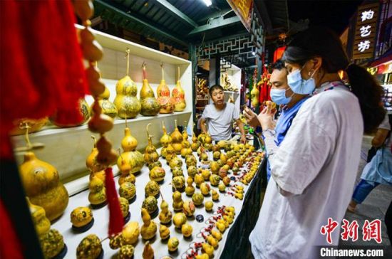 圖為游客購(gòu)買刻葫蘆工藝品。 王斌銀 攝