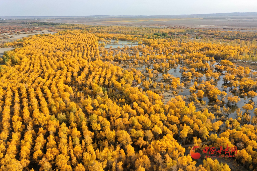 金塔沙漠胡楊林景區(qū)位于金塔縣城以西的潮湖林場,胡楊林分布密集,長勢良好,為三北防護林體系的重要組成部分。