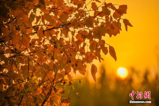 圖為夕陽下胡楊秋色。 王斌銀 攝