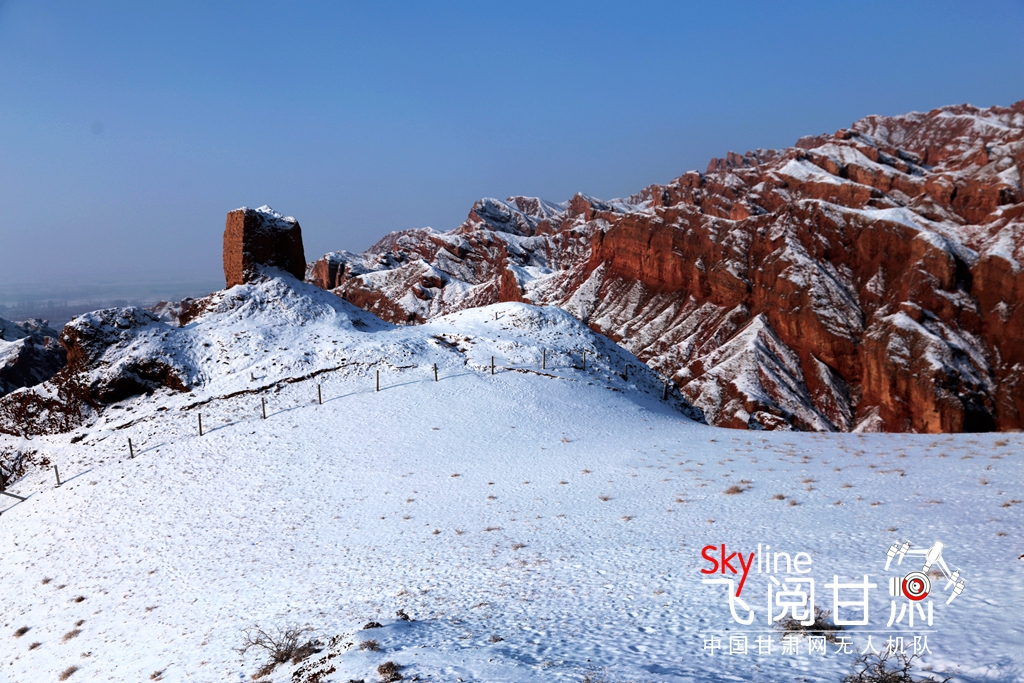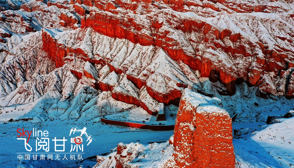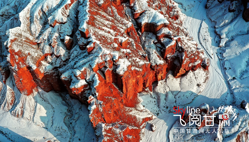 12月9日,甘肅省張掖市臨澤縣板橋鎮(zhèn)紅溝丹霞景區(qū),雪后初晴,丹霞披紗,更顯赤艷,成為冬日的一道靚麗風景。