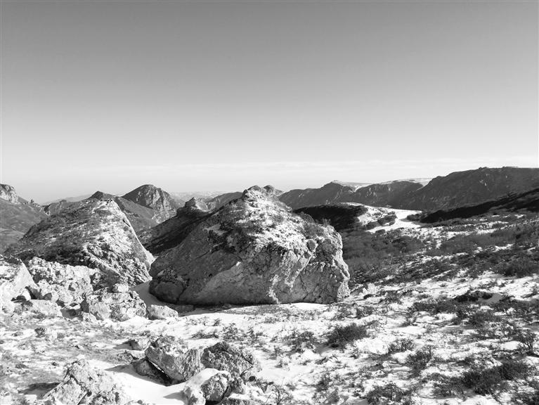 隨著海拔的升高,植被由灌木變?yōu)楦呱讲莸?,空氣也變得更加清冷,雖然寒風(fēng)呼嘯著從耳邊吹過(guò),如刀割般刮在臉上讓人不寒而栗,但視野變得越來(lái)越開(kāi)闊,心境也變得越來(lái)越廣闊,遠(yuǎn)山白云藍(lán)天越來(lái)越近,塵囂遠(yuǎn)遁,浮華殆盡的感覺(jué)油然而生。