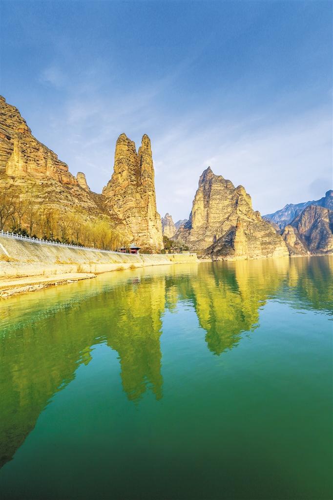 炳靈寺世界文化遺產(chǎn)旅游區(qū)的標志姊妹峰。首席記者 田蹊 攝