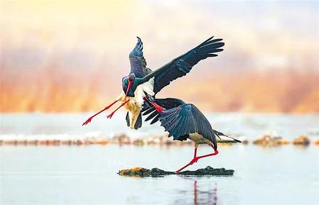 黑鸛不僅會(huì)捕魚,還是珍稀的保護(hù)動(dòng)物。黑鸛有兩條大長(zhǎng)腿,常在濕地邊緣的淺水區(qū)域活動(dòng)覓食,因此是涉禽而不是游禽,有時(shí)它也到水邊的陸地上活動(dòng)。黑鸛身披黑白二色,加上大紅色的眼圈、長(zhǎng)嘴,色彩搭配既強(qiáng)烈又前衛(wèi)。它是我國(guó)體型最大的食魚水鳥之一,飛行遷徙能力很強(qiáng),在歐、亞、非大陸都有分布,但近年來國(guó)內(nèi)的種群數(shù)量下降明顯,已成為國(guó)家一級(jí)保護(hù)動(dòng)物,珍稀程度可以說不亞于大熊貓。