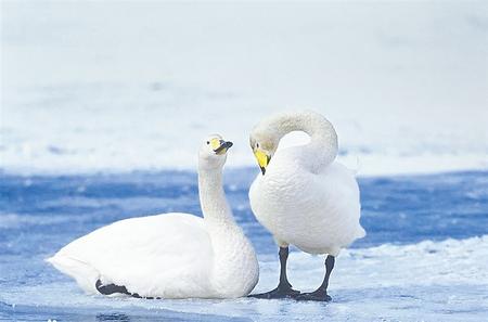 我國(guó)有三種天鵝,在甘肅都有分布,其中更常見的是大天鵝。大天鵝不在甘肅繁殖,而要飛往遙遠(yuǎn)的西伯利亞等地,但會(huì)途經(jīng)甘肅的諸多濕地,并于此歇腳補(bǔ)充能量。