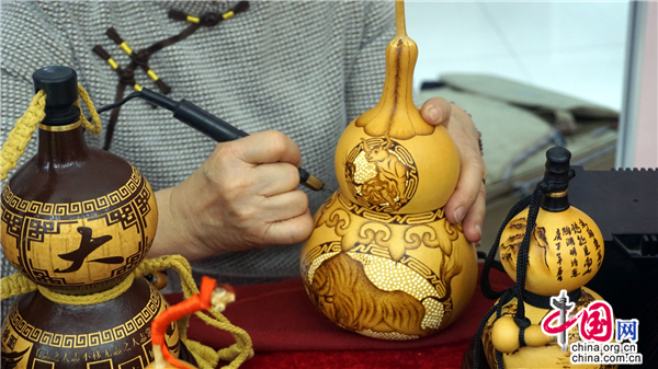 葫蘆烙畫又稱燙畫葫蘆、火筆畫葫蘆,是國家非物質(zhì)文化遺產(chǎn)。做葫蘆烙畫得用烙鐵當筆,燒熱后在葫蘆表面熨出烙痕作畫。烙畫和葫蘆融為一體,能長久保存,可以作為工藝品收藏。其中,非遺傳承人陶瑞珍的葫蘆烙畫形成了獨特的藝術(shù)風格。