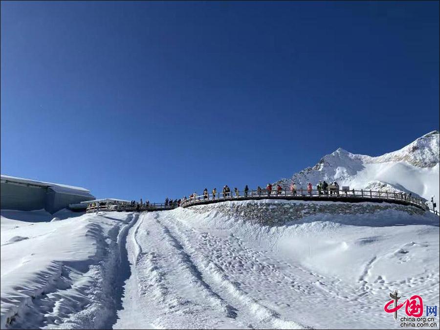 景區(qū)游覽紫外線強,請做好防曬;欣賞雪景時,請佩戴墨鏡;索道上站海拔為4860米,請備好紅景天、氧氣,防止高原反應。