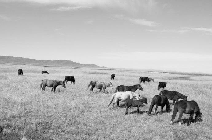 馬兒,似乎不再是草原的寵兒了。我們開車向草原深處漫溯,行進了三四公里,終于看到路邊有十幾匹馬組成的馬群。這些河曲馬儀態(tài)優(yōu)美,安靜自在。