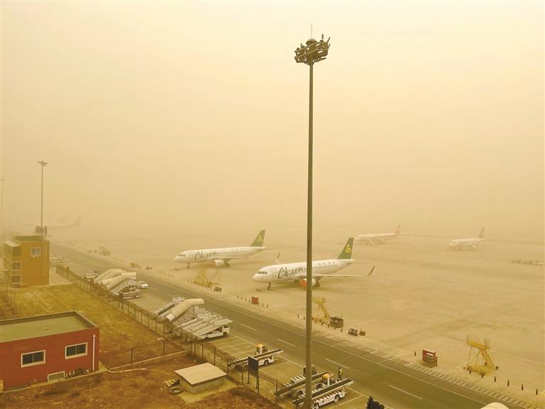 中川機(jī)場黃沙漫天。通訊員金帥群 黃貴彬 攝