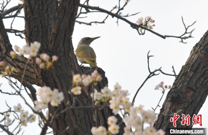 鳥(niǎo)兒在梨樹(shù)枝頭停留。劉峰 攝