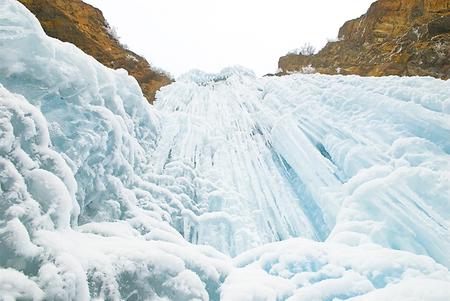 往日飛流直下的山泉瀑布,在冬日里幻化成一排排幾十米寬的銀瀑,從崖壁上垂瀉而下。山谷下,石壁間,清一色的玉白,宛如一座巨大的冰簾,順著崖壁的走勢(shì),或凸出或凹進(jìn),層層疊疊將整個(gè)峽谷環(huán)抱起來(lái)。冰瀑、冰簾、冰柱、冰舌,有的相銜相連,有的各自為政,交替排列。如雕似塑,似瑪瑙,像琉璃,晶瑩透亮。冰下暗流涌動(dòng),嘩嘩的水聲,由高到低在冰下輕響。一時(shí)間,仿佛置身于潔白無(wú)瑕的童話世界。朋友不住地贊嘆:“這才是真正的冰清玉潔!”