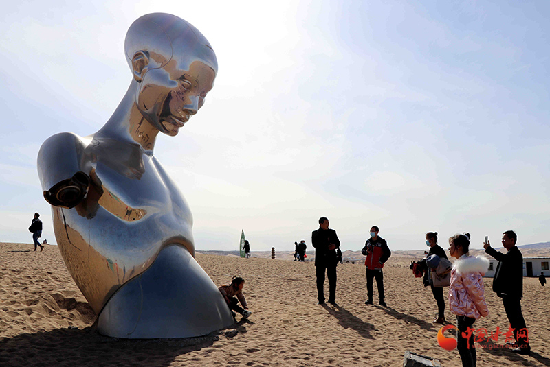 春節(jié)期間,甘肅省民勤縣蘇武沙漠雕塑藝術(shù)主題公園117件不同材質(zhì)、不同風(fēng)格的雕塑藝術(shù)佳作,高聳在靜謐的蒼穹之下,在茫茫沙漠中,與藍天白云相映成趣,盛迎四海賓朋前來觀光旅游,讓孤寂的沙漠,成為了熱門的“打卡地”。
