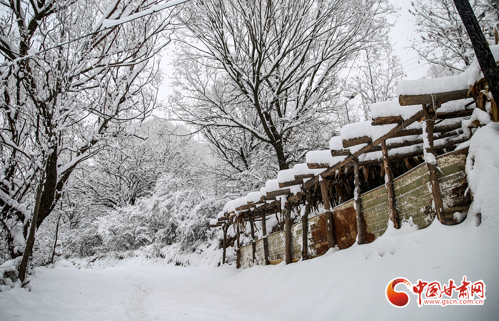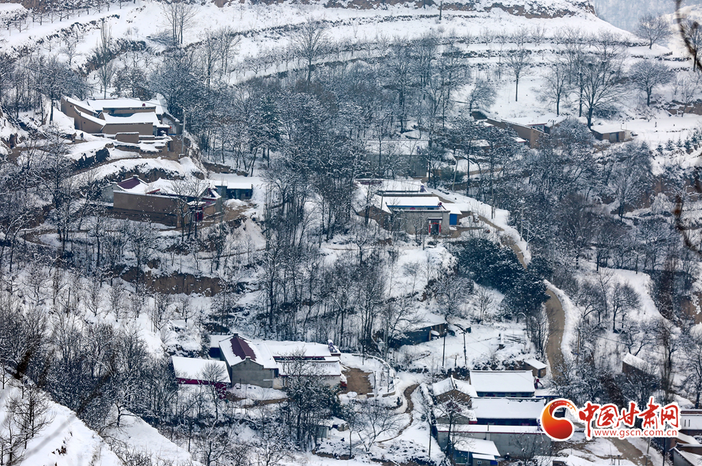 2月8日,雪過天晴,甘肅省平?jīng)鍪徐o寧縣賈河鄉(xiāng)侯山村銀裝素裹,美不勝收。果園、梯田、房屋、公路及遠(yuǎn)山構(gòu)成了一幅天然的鄉(xiāng)村畫卷。