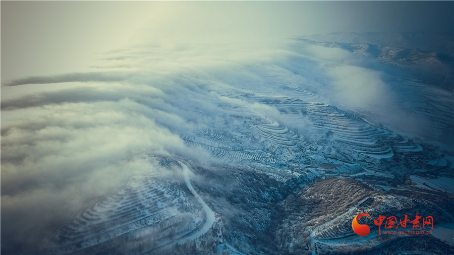 【隴拍客】蘭州榆中:穿越云海看梯田 雪后家園似仙境