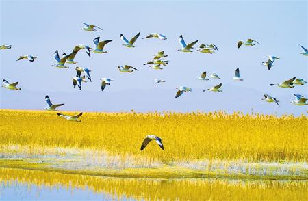 蘇干湖草原水草豐美、候鳥翻飛。高宏善