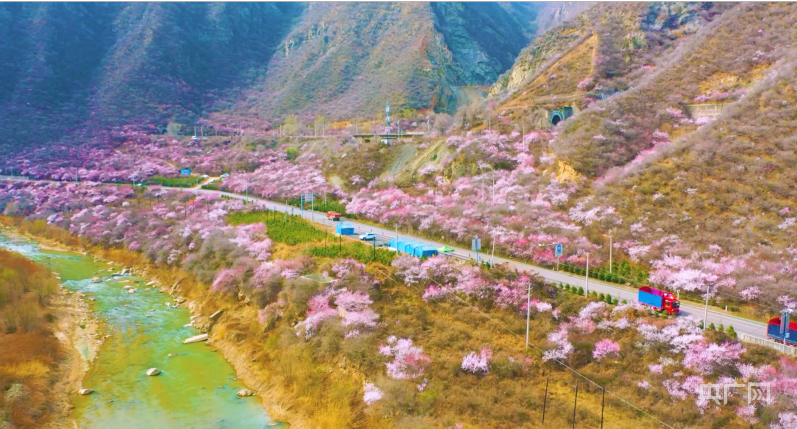 央廣網(wǎng)蘭州4月2日消息 (記者 邸文炯 通訊員 王紅剛 孫淑霞)近日,甘肅省崇信縣峽門寶中鐵路華亭市安口窯站附近的山上桃花盛開,花香四溢、如煙似霞?;疖噺纳街械乃淼来┬卸^,駛向一片春光燦爛。