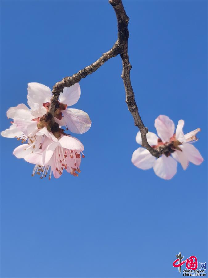 敦煌鳴沙山下李廣杏花競相開放 美如畫卷 -