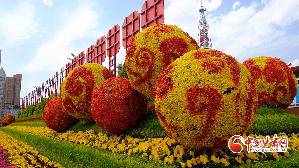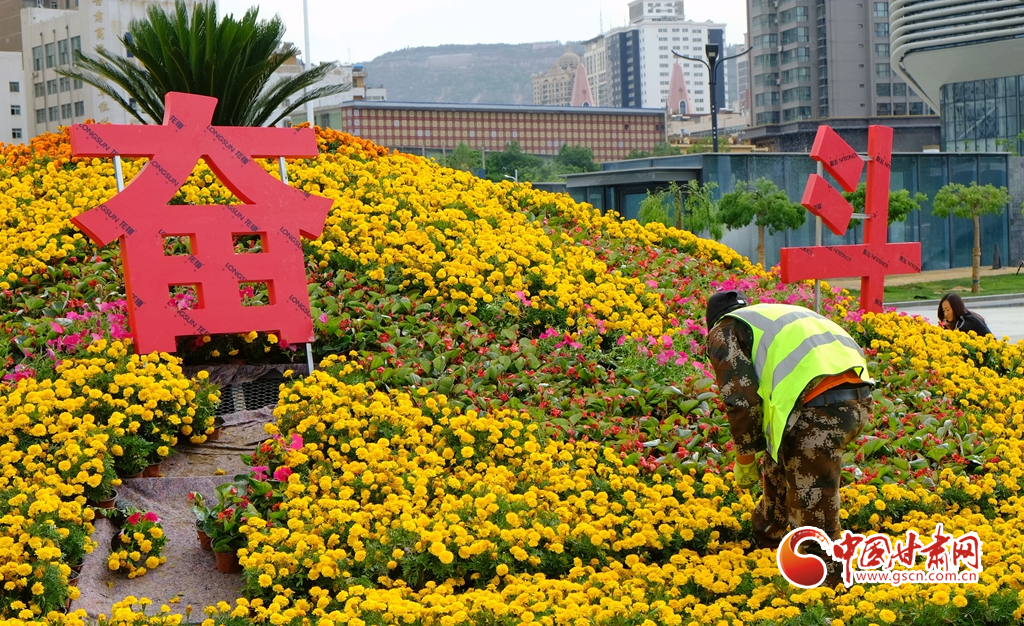 蘭州市東方紅廣場全新的花壇喜迎省第十四次黨代會(huì)