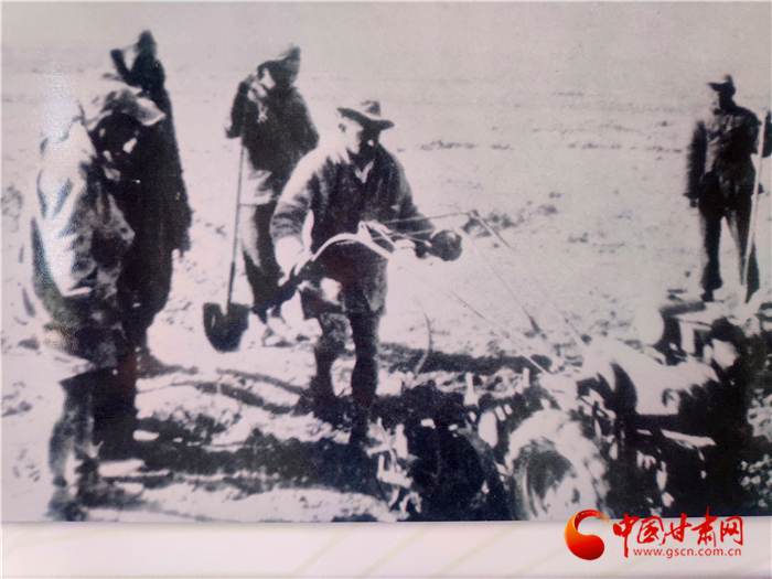 上個世紀(jì)40年代,山丹四壩灘上,山丹培黎學(xué)校農(nóng)業(yè)組的學(xué)子在種地中學(xué)習(xí),還實施了灌溉引水澆地。