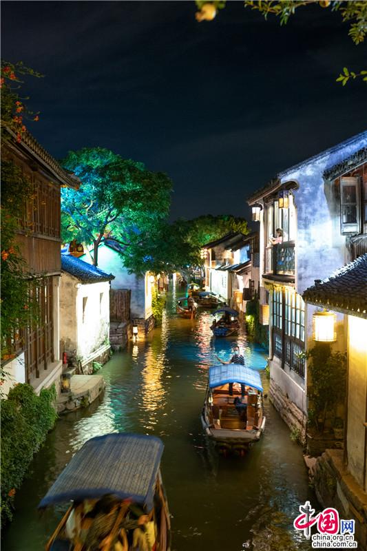 宋朝時(shí)候,宵禁解除,每至深夜,燈火通明。如今周莊的夜色,亦是在光影中沉醉,水影搖曳間,畫(huà)船枕眠。這里,可以陽(yáng)春白雪,不食煙火;也可以徹夜不歇,最懂人間。這場(chǎng)周莊的溫柔夢(mèng),將一直編織下去……澤國(guó)溫柔的清風(fēng),夜間可愛(ài)的彎月,若能與你共賞,那便再無(wú)遺憾。歌里唱,不懼怕,天涯路長(zhǎng),甘為你,披滿身風(fēng)霜,請(qǐng)君,入夢(mèng)。(尤紫璇 周宣)
