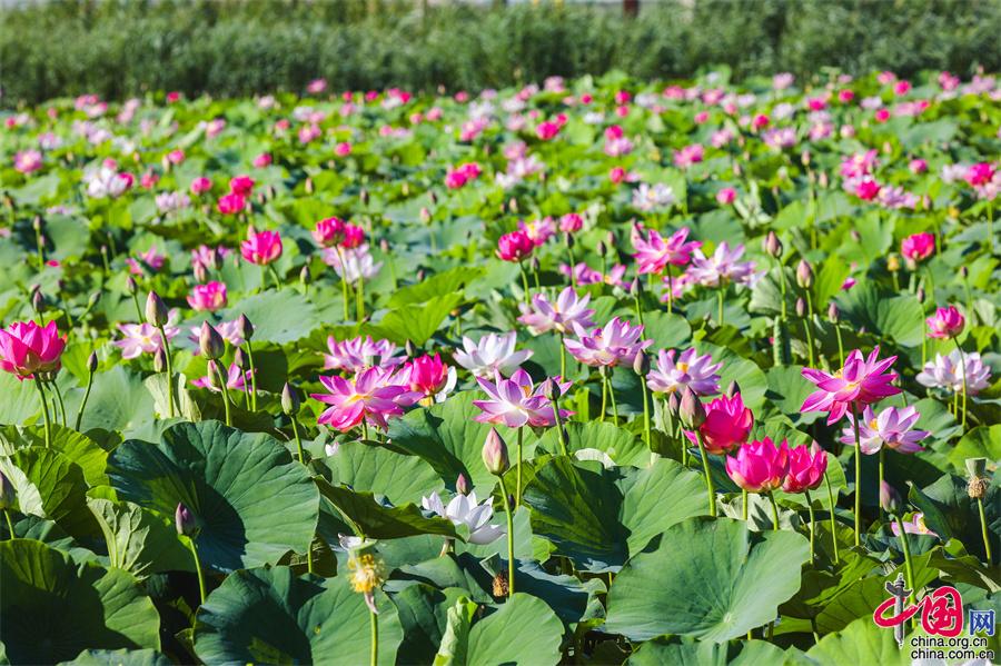 七八月份,正是荷花競(jìng)相盛開(kāi)的季節(jié),寧夏沙湖景區(qū)利用淺灘和鹽堿地種植觀賞性荷花,在湖東游線深處打造了西北沙漠旁的“萬(wàn)畝荷花苑”,為景區(qū)夏日增添一抹韻味。成片的荷花在西北的驕陽(yáng)下熠熠生輝,構(gòu)成“接天蓮葉無(wú)窮碧”的塞上秀美荷塘景觀。