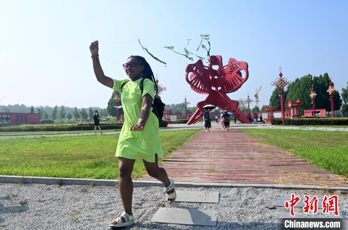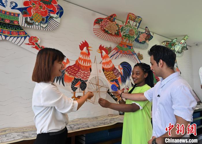 中新網(wǎng)廊坊7月21日電 (李玉素 宋敏濤)21日,來自河北師范大學的尼日利亞籍留學生馬臻和巴基斯坦籍留學生烏瑪爾,來到河北省廊坊市安次區(qū)第什里風箏小鎮(zhèn),體驗中國傳統(tǒng)的風箏文化。