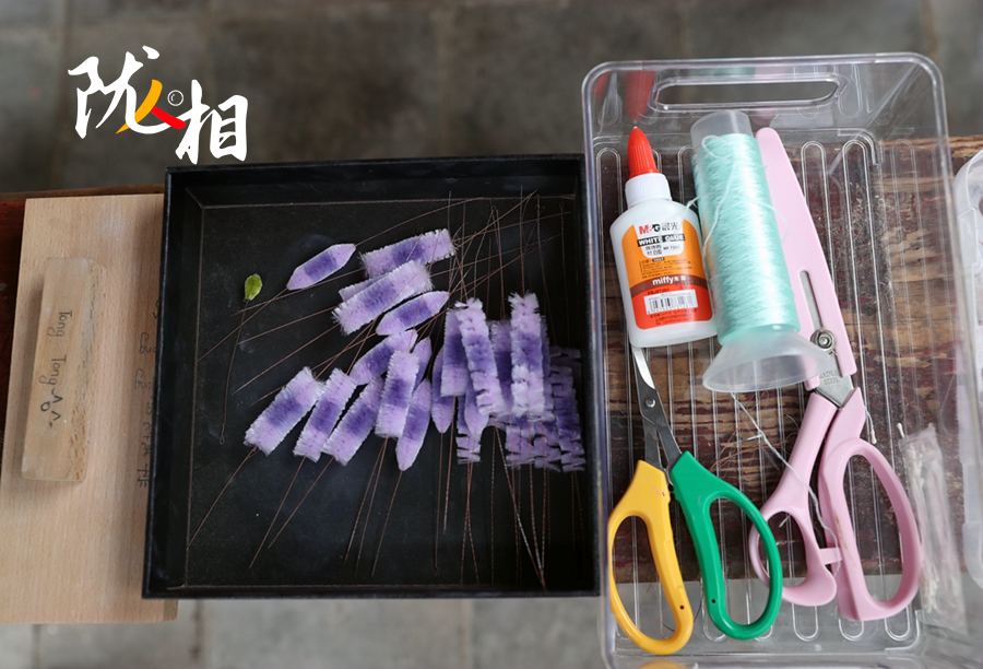 排線、栓銅絲、裁剪寬度、勾挑搓絲、打尖、傳花,每一個(gè)制作過程都需要耐心,制作一朵簪花少說也要一周時(shí)間。對(duì)于宗怡彤來(lái)說,學(xué)會(huì)簪花,也就學(xué)會(huì)了靜下心來(lái)面對(duì)一切,在沉浸的時(shí)光,心無(wú)旁騖,才能享受最終的賞心悅目。