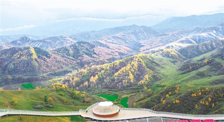 今年以來(lái),臨夏縣圍繞旅游大通道項(xiàng)目,在景區(qū)建設(shè)完善步道、觀景臺(tái)等基礎(chǔ)設(shè)施,帶動(dòng)旅游產(chǎn)業(yè)發(fā)展。圖為景色如畫的耳子屲梁。 記者 史有東 攝